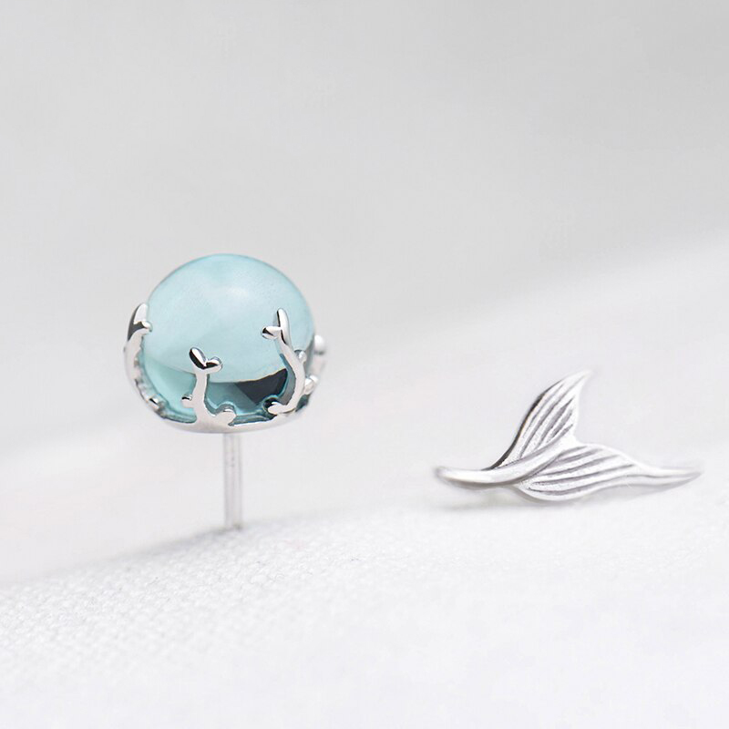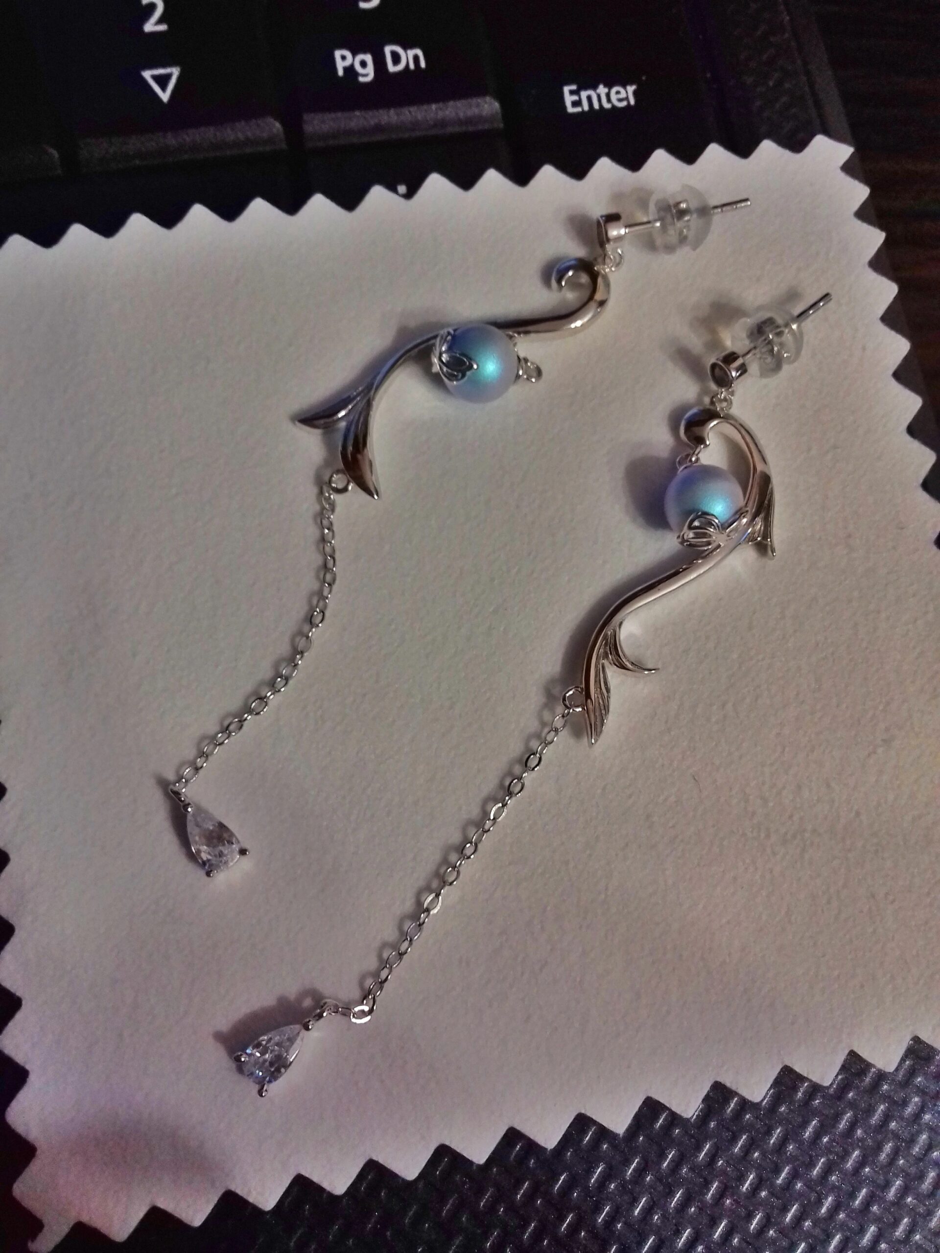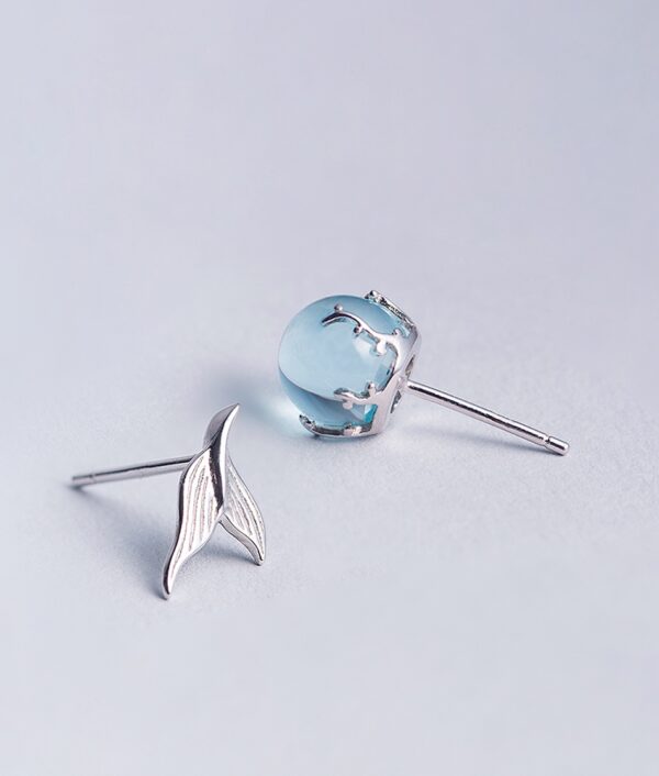 A sellőnek csak az uszonya csillan meg a fényben, amikor alábukik az óceán mélyére. Ezt a tűnékeny, varázslatos pillanatot örökíti meg a gondosan kidolgozott fülbevaló.