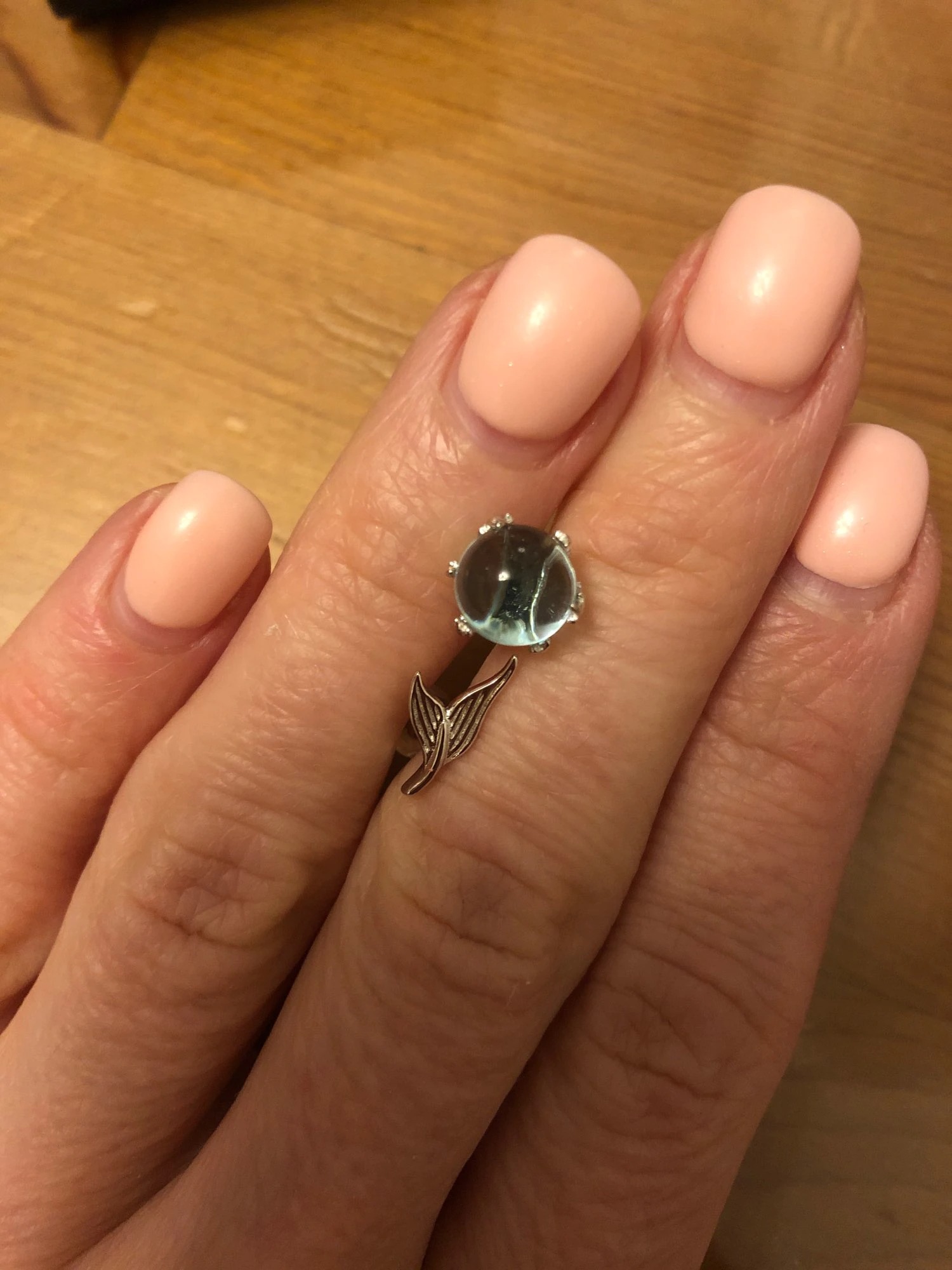 Különleges megjelenését a kék kristálynak köszönheti, amelyen az óceánhoz hasonlóan változatos színekben pompázva törik meg a fény, és párján található ezüst sellőuszony-motívumnak.